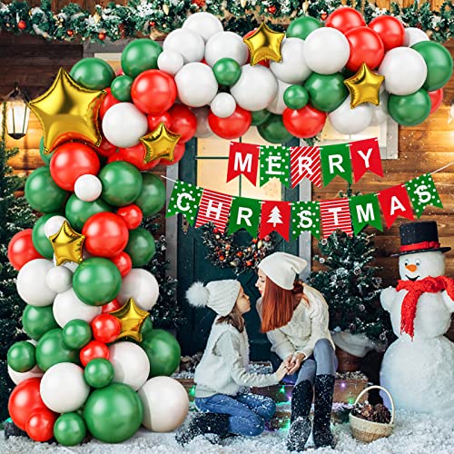 Arco Palloncini di Natale, Verde Rosso Bianco Arco Palloncini di Natale, 95Pcs Palloncino Elio di Natale Palloncino Stagnola Stelle Dorate Banner di Natale Per Decorazioni Natalizi Forniture Per Feste