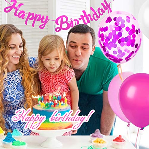 Foil Palloncini Numeri 4 Rosa, 4 Compleanno Decorazioni Bambina, Numero 4 Buon Compleanno Banner, Feste Decorazione di Compleanno Palloncino in Lattice Coriandoli Palloncini