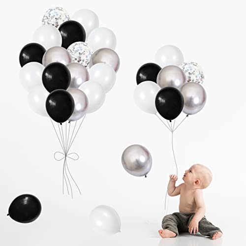 126 palloncini neri argentati: 12,7 cm palloncini neri (20 pezzi), palloncini bianchi (20 pezzi), palloncini in argento metallizzato (20 pezzi);