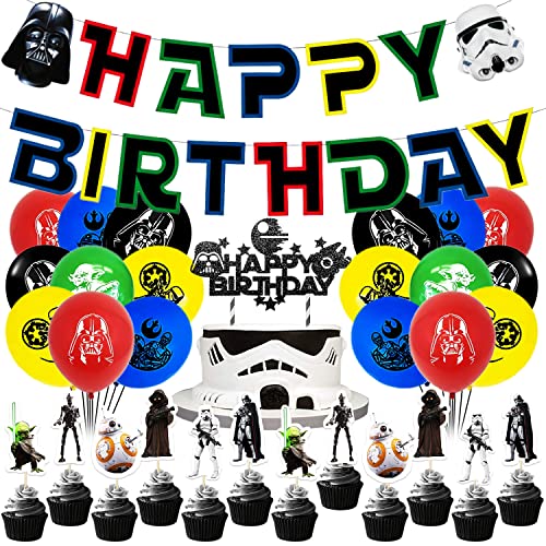 [Decorazione di compleanno]: il set include 1 set di striscioni di compleanno, 20 palloncini in lattice da 12 pollici (4 bianchi, 4 neri, 4 gialli, 4 blu e 4 verdi), 24 inserti per torte, 1 inserto grande e 1 bobina, un totale di 47 pezzi.