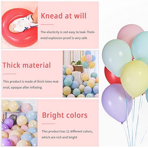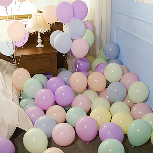 1.【Palloncini Macaron Pastello】Circa 90 palloncini macaron pastello grandi, 10 tipi di colori (Colore casuale),Le tue decorazioni ideali per feste Macaron.
