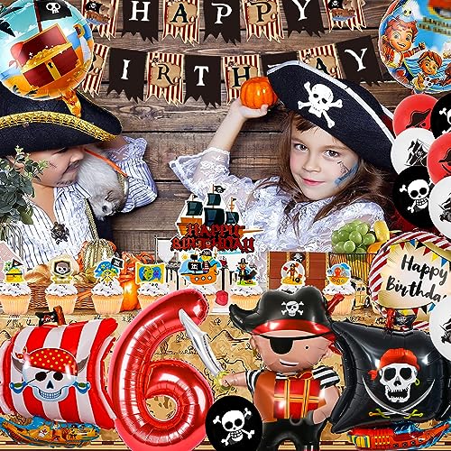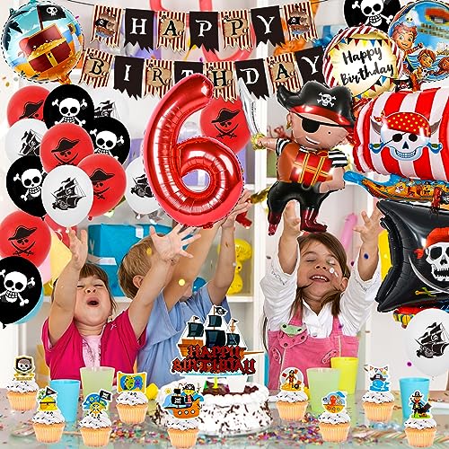 Palloncini Pirata,36 Pezzi Decorazioni di Compleanno 6 Anni,Pirati Palloncini di Compleanno,Giganti Palloncini Foil Nave Pirata,Compleanno Banner,Cake Topper,Pirata Decorazioni Compleanno per Bambini