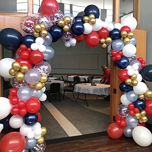 Set di 103 palloncini rossi bianchi e blu, con palloncini rossi e bianchi blu reale, con nastri a palloncino, set di palloncini a elio in lattice blu, rosso, bianco, per compleanni, baby shower