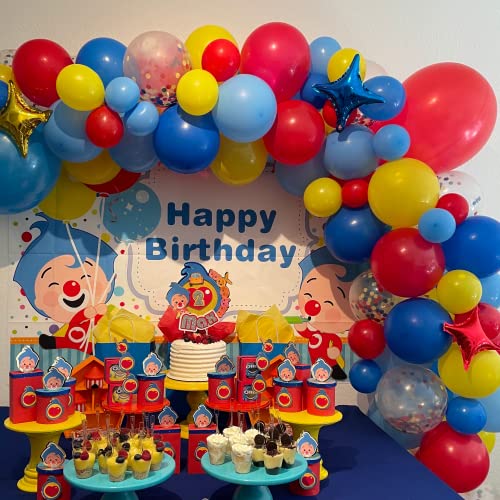 Confezione conveniente: riceverai 4 palloncini di diversi colori da 30,5 cm, 15 pezzi blu opaco, 15 giallo opaco, 15 pezzi rosso opaco, 15 coriandoli rossi gialli blu, totale 55 pezzi, con 2 nastri gialli per palloncini.