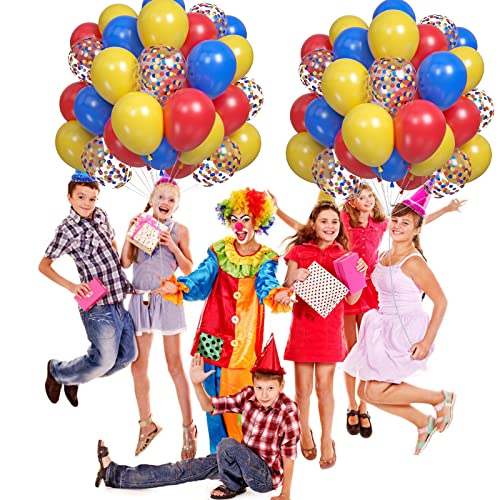 Palloncini rossi, blu, giallo, confezione da 55 palloncini a elio blu opaco, giallo, rosso, con coriandoli in lattice, palloncini per feste di compleanno, per bambini matrimoni, feste di carnevale