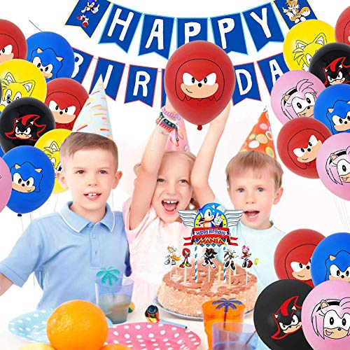 Palloncini Sonic Foil, 60PCS Sonic the Hedgehog Balloons Sonic set Compleanno Decorazione Sonic The Hedgehog Set Compleanno Decorazione per Feste Buon Compleanno Set