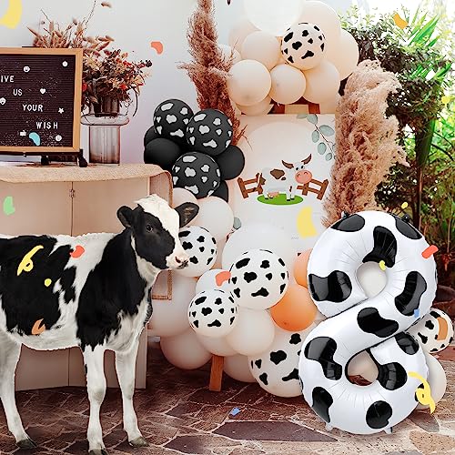 Palloncini Stampa Mucca, 101,6 cm Carini Birthday Balloons Number Riutilizzabili Decorazioni Compleanno Mucca Forniture per Feste di Compleanno a Tema Fattoria per Bambini (Numero 8)