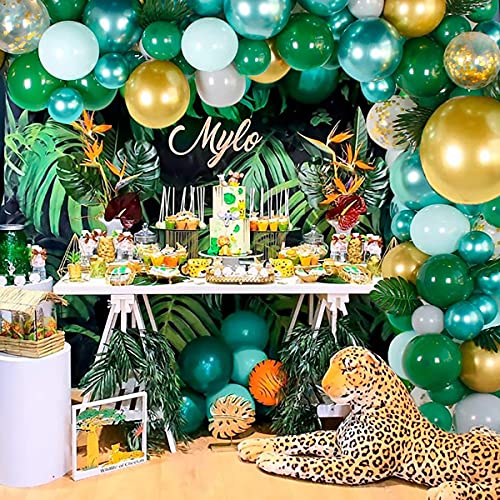 70 palloncini verde bianco oro metallici, per battesimo, bambini, asilo, festa di compleanno, festa della giungla, decorazione per feste di compleanno