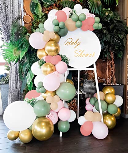 Kit Arco Palloncini Verde e Rosa, 97 Pezzi Palloncini Verde Salvia e Rosa Palloncini Compleanno Palloncino Color Pelle, Palloncini Festa per Baby Shower, Festa di Compleanno, Matrimonio, Anniversario