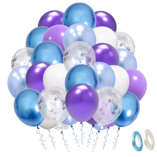 Palloncini Blu Viola Frozen Palloncini 60 Pezzi Viola Bianco Blu Palloncini Metallici Palloncini Lattice Palloncini Elio con Fiocchi di Neve per Principessa Compleanno Battesimo Festa di Natale