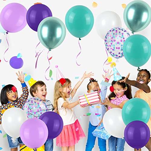 Palloncini Viola e Verdi 50 Pezzi Palloncini Sirena, Palloncini Coriandoli in Lattice da 12 Pollici, Palloncini Blu Viola Verde Metallico per Decorazioni per Feste a Sirena Forniture per Feste di