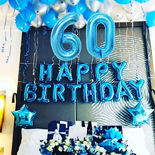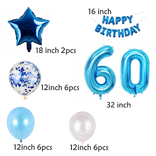 Palloncino per 60° compleanno, da uomo, blu, decorazione per 60 anni, decorazione per compleanno, da uomo, blu, set per 60° compleanno, 60° compleanno, 60 anni, set di decorazione per uomo (60)