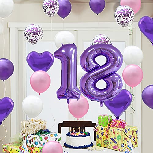 Palloncino per 18° compleanno, decorazioni per 18° compleanno, colore viola, numero 18 in Mylar palloncini in lattice, idea regalo per ragazze, ragazzi, donne, uomini