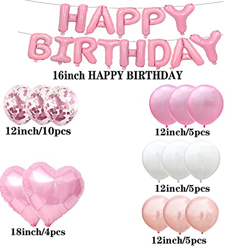 La confezione include: 10 palloncini in lamina rosa da 10 pollici, 16 "Happy Birthday day", 4 palloncini a forma di cuore in mylar da 45,7 cm, 10 palloncini a forma di coriandoli, 5 palloncini in lattice rosa, 5 palloncini in lattice rosa e 5 palloncini in lattice color oro rosa. Palloncino in lattice bianco S.Il set di compleanno è perfetto per la festa di compleanno