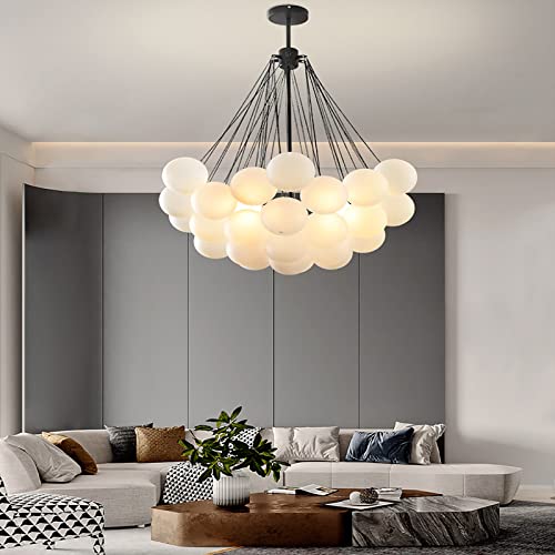 Palloncino Design Sospensione per Camera Da Letto Soggiorno Scale,E27 Lampada A Sospensione Apparecchio Sfera Soffitto Durante Lampada,Moderno Bolla Palla Lampada-Nero 37 teste 80x100cm