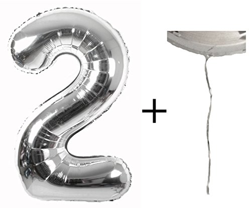 Palloncino Gigante Numero 2 XXL 86cm + Stringa Gratuita per Il Palloncino, Elio/Aria-Risparmio, Ideale per Compleanni, annversario, Decorazione