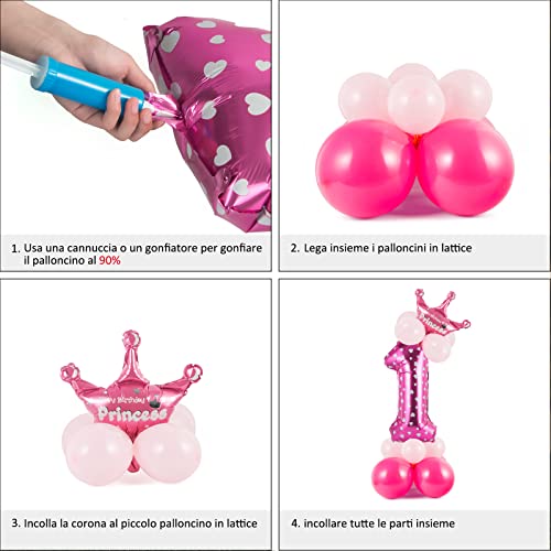 1 Anno Palloncino Foil Numero Palloncino Rosa, 115 cm Grandi Foil Palloncini Numeri 1, Feste Decorazione di Compleanno Palloncino