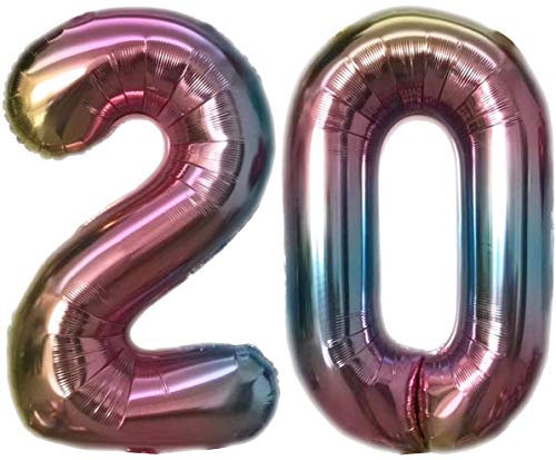 Palloncino in pellicola, numero 20, colorato, XL, altezza circa 72 cm, per feste di compleanno, anniversario o altre occasioni festive (numero 20)