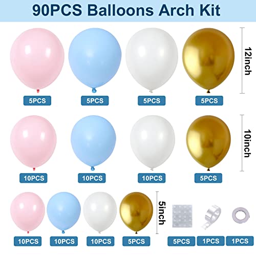 Kit per arco a palloncino rosa, 90 pezzi, ghirlanda di palloncini rosa e blu macaron con palloncino a elio bianco palloncino in lattice dorato per decorazioni per feste, baby shower, matrimoni, decorazioni di compleanno