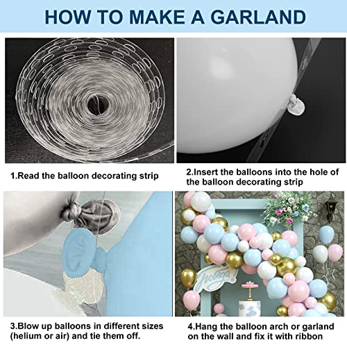 Kit per arco a palloncino rosa e blu: il kit di ghirlande per palloncini rosa blu include palloncini da 30,5 cm: 10 rosa macaron, 5 blu macaronmeta, 5 bianchi, 5 oro metallizzato;