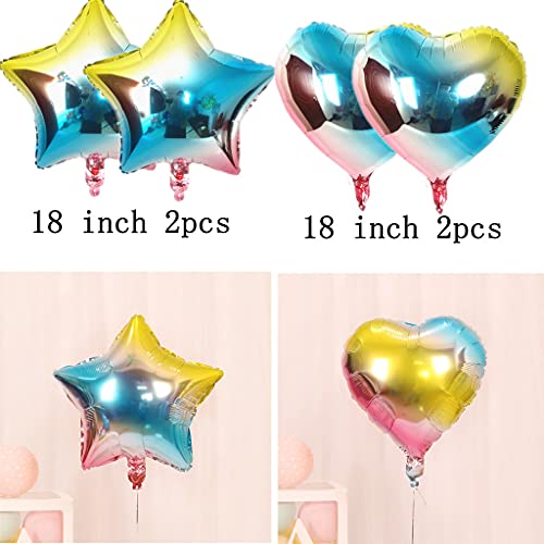 Confezione: 2 palloncini arcobaleno a forma di cuore (non gonfiati), 2 palloncini a elio, a forma di stella, 2 pezzi.