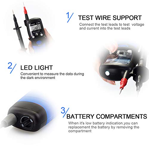 【Alta precisione】Display con 2000 conteggi, il voltmetro può misurare accuratamente l'autorange per la tensione CA CC a 600 V: +/- 0,5% della lettura. Resistenza a 20 MΩ. Caratteristiche con data hold, test diodi e cicalino di continuità.