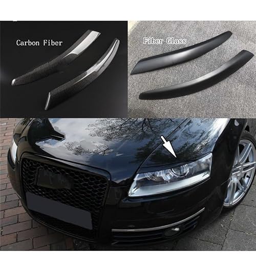 Auto Palpebre Copertura Auto in Fibra Carbonio Faro Sopracciglia Copertura Trim Sticker Testa Lampada Palpebra per Audi A6 C6 2005 2006 2007 2008 2009 2010 2011 Fibra Vetro (Colore: Fiber Glass)