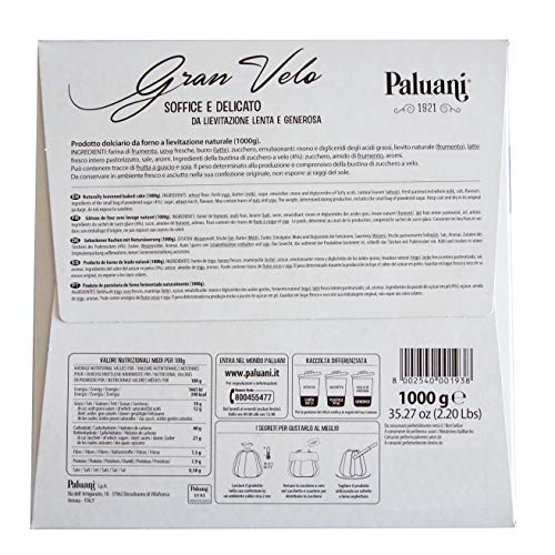 PALUANI Pandoro GranVelo, il più soffice tra i dolci natalizi, ricetta originale della tradizione, lievitazione lenta, ingredienti selezionati, uova fresche, prima qualità, pandoro natale 1000 g