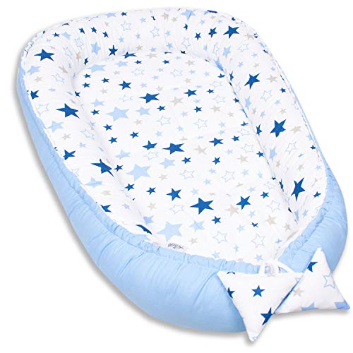 PaLulli nido per bebè nido per bebè 50x90 cm bozzolo, 2 lati, 100% cotone, nido per lettino, nido per coccole, cuscino, lettino da viaggio per neonati e bambini (stella B)