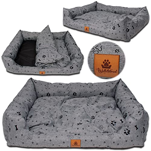 PaLulli ANIMAL Cuccia per Cani Cuscino Sfoderabile Impermeabile Lavabile Lavatrice Poliestere Morbido e Comodo Pet Friendly Molto Durevole Resistente alle Abrasioni 70x57x18cm Grigio con Motivo Zampe