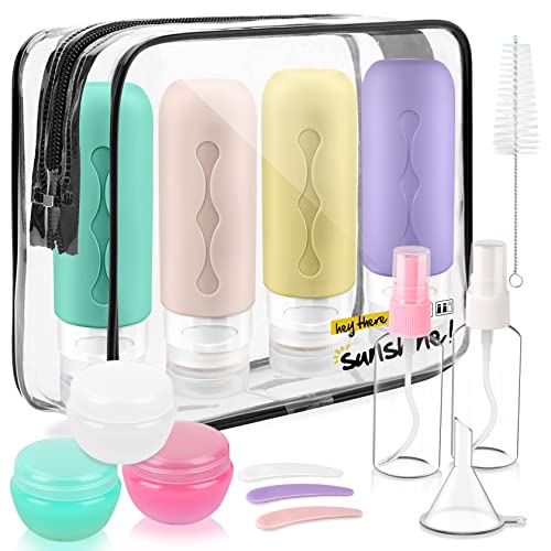 [Design colorato & approvato TSA ]: set di bottiglie da 90 ml, perfetto per shampoo, balsamo, lavaggio del corpo, lozioni e molto altro ancora. Gli accessori colorati includono 1 confezione da viaggio, 3 barattoli, due piccoli flaconi spray e un cucchiaio per lozione e una spazzola per pulire le bottiglie. Garantisce una piacevole vacanza con bagagli leggeri durante i viaggi.