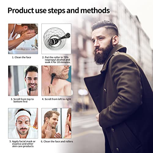 PAMIYO 2 pezzi rullo per barba 0,5 mm, rullo per microneedling con 540 aghi in lega di titanio Set rullo per barba Dermaroller Set rullo per barba Dermaroller per la crescita della barba