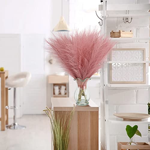 Pampas Decorative Alte 6 Pezzi Artificiali Essiccati Erba Fiori Pampa Grigio Scuro Fiori Finti Naturale Fiori Secchi, per Soggiorno Camera Natale Nuziali Alla (Rosa)