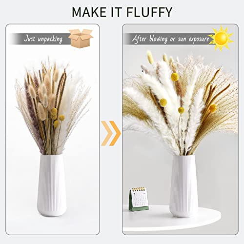 PER SEMPRE BELLO: Il bouquet di fiori secchi è composto da erba di pampa naturale al 100% di alta qualità, piantata dalla natura ed essiccata con un processo speciale, si mantiene sempre naturalmente bella in tutte le stagioni. Nessuna manutenzione quotidiana, non cadrà o sbiadirà, ottima scelta per la decorazione domestica.