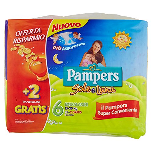 Pampers Sole e Luna Pannolini Extralarge, Taglia 6 (15-30 kg), 34 Pannolini