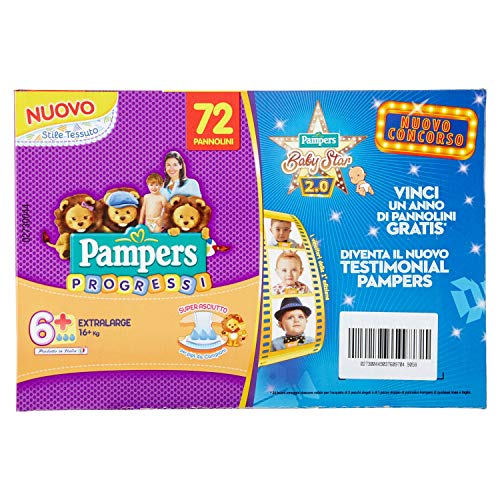 Pampers Progressi Pannolini, Extralarge 16+ kg, Taglia 6+ - Pacco da 72 Pezzi