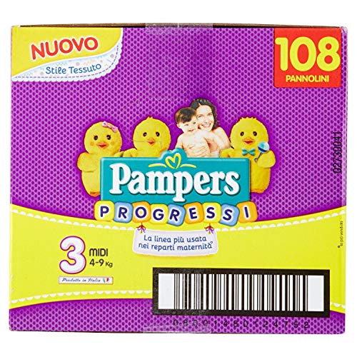 Pampers Progressi Pannolini Midi, Taglia 3 (4-9 kg) - Pacco da 108 Pezzi