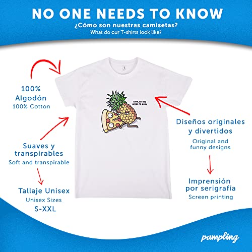 Pampling Maglietta Manica Corta in 100% Cotone, Abbigliamento Unisex per Uomo e Donna in 5 Taglie, T-Shirt Bianca, Modello No One Needs To Know (XL)