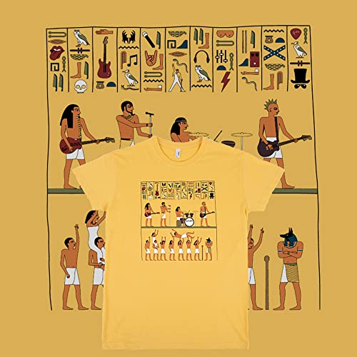 Pampling Maglietta Manica Corta in 100% Cotone, Abbigliamento Unisex per Uomo e Donna in 5 Taglie, T-Shirt Gialla, Modello Ancient Rock (L)