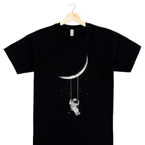 Pampling Maglietta Manica Corta in 100% Cotone, Abbigliamento Unisex per Uomo e Donna in 5 Taglie, T-Shirt Nera, Modello Moon Swing (XL)