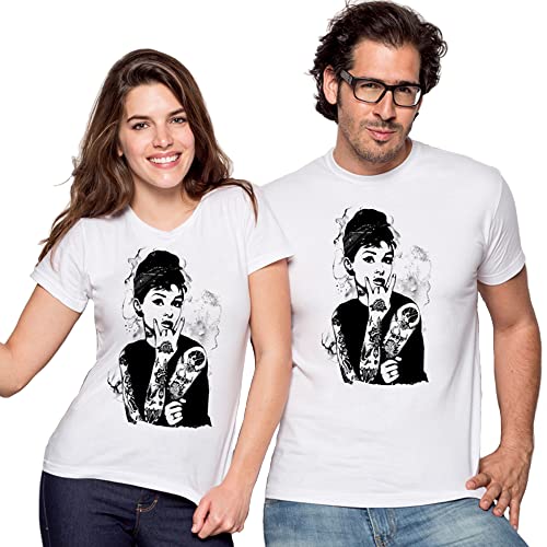 Pampling Maglietta Manica Corta in 100% Cotone, Abbigliamento Unisex per Uomo e Donna in 5 Taglie, T-Shirt Bianca, Modello Audrey (M)