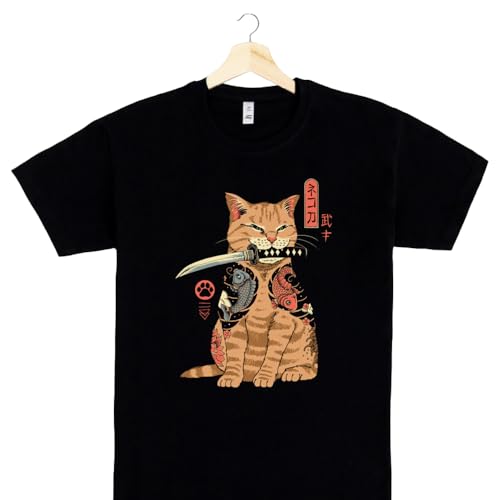 Pampling T-Shirt Manica Corta in 100% Cotone, Abbigliamento Unisex per Uomo e Donna in 5 Taglie, T-Shirt Nera, Modello Catana (M)