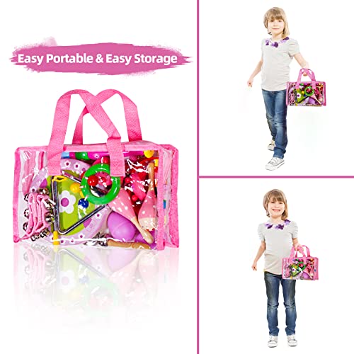 PAMRAY Strumenti Musicali Bambini Percussioni Legno Mini Ritmo Giocattoli Maracas Sonaglio Tamburello Instruments Musica Educativo Toy Rosa