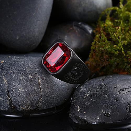 PAMTIER Anello da Uomo in Acciaio Inossidabile Nero con Cristallo Rosso Pietra Preziosa Quadrata Taglia 14