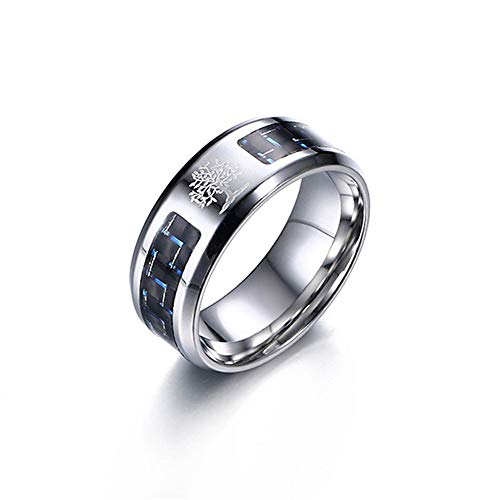 PAMTIER Anello dell'Albero della Vita da Uomo in Acciaio Inossidabile Fibra di Carbonio