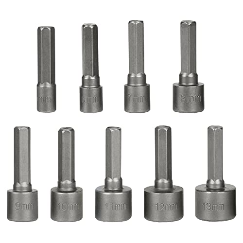Pamtns Set di Chiavi a Bussola 9 Pezzi Set Chiavi a Tubo Set di Punte per Chiave a Bussola Hexagon Nut Driver Drill Bit Dadi per Avvitatore Set Adattatore Esagonale Classici Chiavi
