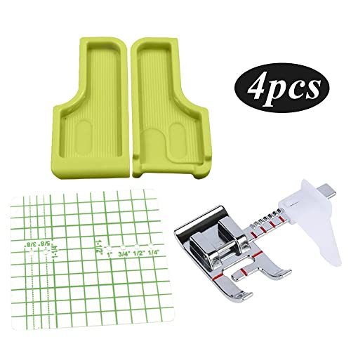 La confezione include: 4 Ausili per cucire includono 2 piastra di posizionamento guida di cucitura cucita, un regolabili piedini cucito domestica e un foglio di posizionamento in plastica.