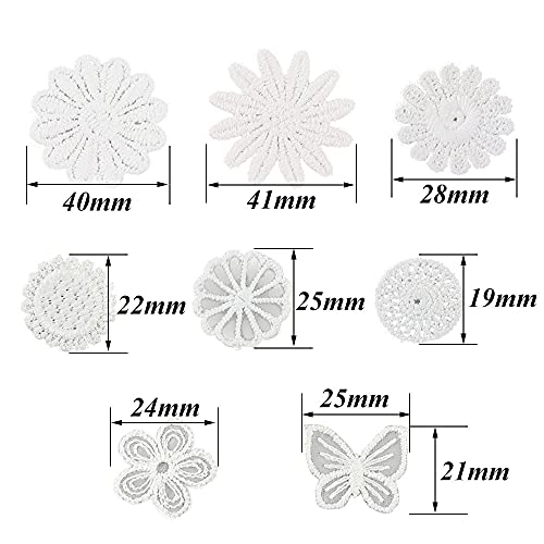 Pamtns Toppa Ricamata 40 Pezzi Applicazioni per Tessuti Sew On Patches Appliques Toppe Decorative Ricamato Appliques Patch Bianco per DIY Craft Decorazioni