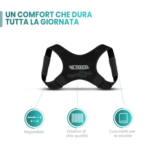 Mr. Panache Correttore Posturale | Fascia Posturale Spalle e Schiena Dritta | Supporto per Raddrizzare la Schiena per Dolori al Collo, alla Schiena e alle Spalle | Regolabile Traspirante Lavabile
