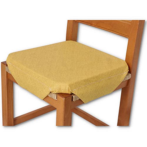Panama Cuscino coprisedia con Alette Cuscini per Sedie da Cucina, Coprisedia in Tinta Unita con Imbottitura - Giallo Oro